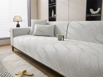 清新蓝叶纹沙发套,柔美荷叶边设计,搭配萌趣抱枕,营造梦幻温馨的居家氛围,面料质感细腻,实景呈现舒适治愈感。