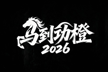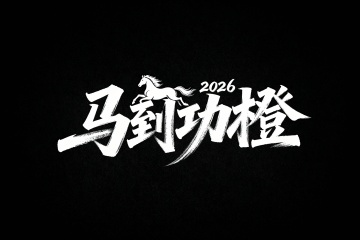 生成“马到功橙”的艺术性主题字体,字体里面带有马的元素,字是白色,背景是黑色