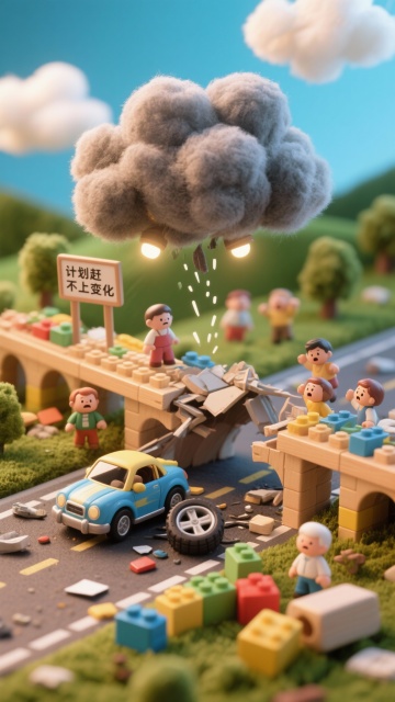 黄昏逆光视角,一间被夕阳染成琥珀色的废弃教室,曾经整齐的木质课桌椅如今以各种角度倾斜散落,几张翻倒的椅子腿指向天花板,墨绿色黑板上数学公式被雨水冲刷得斑驳模糊,露出底下学生用白色粉笔偷偷画的褪色宇航员。教室后方的黄色书柜已倾颓半壁,书籍如瀑布般倾泻在地板上,几页残破的书页被穿堂风卷起,在斜射的金色光束中飘舞。窗框上的玻璃大多碎裂,只有一块还顽强地反射着最后一抹残阳,空气中悬浮着尘埃与细小的纸屑,墙角蛛网在光影中如同精致的蕾丝装饰。