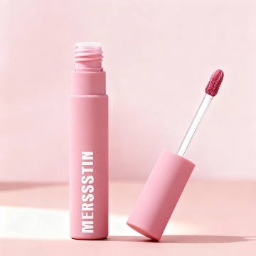 液态风唇釉,重拟物设计,光影交错中展现奢华质感,柔和清透的粉色调搭配现代感几何瓶身,尽显时尚与高级。