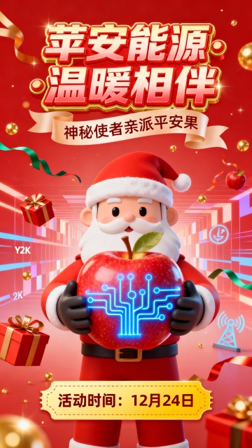 软3D毛绒风圣诞贺图,色彩缤纷,萌趣十足,结合卡通元素与节日符号,营造喜庆、甜美、可爱的平安夜氛围。