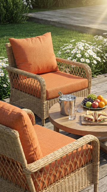 生成三张场景图 产品是图中的沙发和沙发巾,场景展示可以是多角度的 要求保留沙发巾的材质细节,可以多角度展示沙发和沙发巾 场景可以是奶油风的客厅背景,可以是家里阳台的沙发展示,或者室外露台凉亭的沙发巾展示 比例1:1