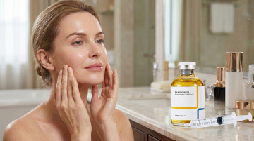 高清晰3D渲染的护肤品展示图,白色纯净背景,五款不同样式和类型的护肤品整齐排列,从左到右依次为:高瘦圆柱形透明蓝色玻璃喷雾瓶配银色按压泵头、中等高度圆柱形半透明渐变蓝玻璃喷雾瓶配银色金属盖、矮胖梨形透明蓝色玻璃喷雾瓶配银色按压泵、小巧圆柱形透明玻璃喷雾瓶配银色泵头、以及矮圆罐状透明玻璃面霜瓶配银色螺旋盖。所有瓶身具有光滑细腻的玻璃质感,内部液体呈现清澈的淡蓝色或透明色,瓶盖和泵头为高反光金属材质,带有细腻的光影反射和高光点。整体画面采用柔和的顶部光源,在瓶身底部形成轻微的阴影,增强立体感,构图对称平衡,视觉层级清晰,突出产品的高端质感和纯净简约的设计风格,信息传达直接高效,符合护肤品广告的目标受众审美。