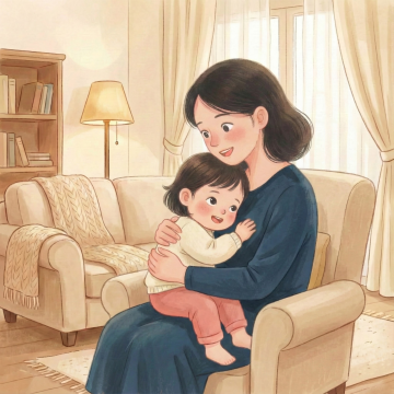 梦幻水彩插画风,母子互动温馨可爱,泡泡与星光点缀,营造温暖治愈的亲子时光。
