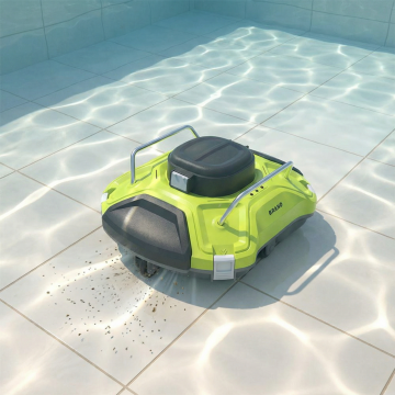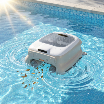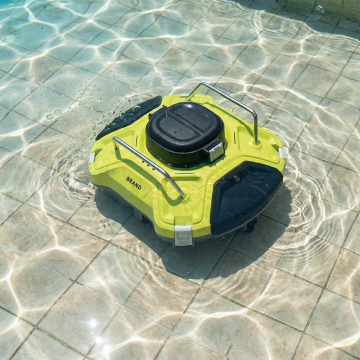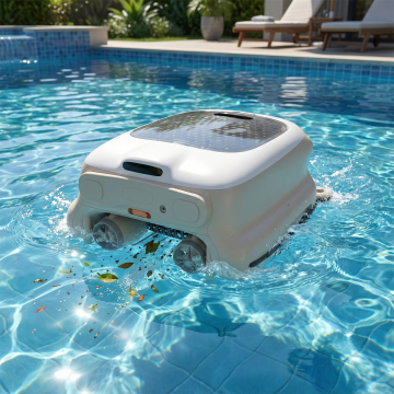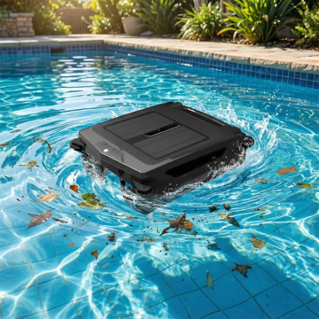 吸污机泳池水面作业场景图,蓝色水面环境真实自然