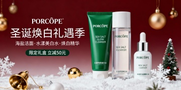 清新绿意中,3D玻璃风瓶身置于草丛礼盒,轻拟物设计融合虚拟自然,简约主义演绎清爽舒适感。