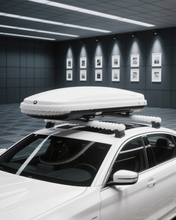 现代感3D风豪车,实景奢华瀑布背景,虚拟现实体验。