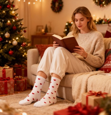 一个欧美白人女性穿着图中的袜子(长度为14cm的中短袜),穿着运动短裤短袖,穿运动鞋鞋,在打网球