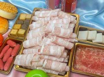中式火锅宴遇圣诞,蒸汽氤氲中融汇喜庆与温馨,实景美食摄影风搭配光影与雪景,重拟物质感呈现节日温暖氛围。
