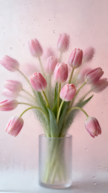 一束娇艳欲滴的粉白色玫瑰花丛特写,每朵玫瑰花瓣层层叠叠,边缘微微卷曲,表面覆盖着晶莹剔透的水珠,水珠在花瓣上折射出闪亮的光泽,背景中玫瑰花影朦胧,整体呈现出柔和的浅粉色与白色渐变色调,光影柔和,营造出浪漫清新的氛围,花瓣质感细腻柔软,绿色花萼点缀其间,构图饱满,细节丰富,具有高度写实的摄影风格。