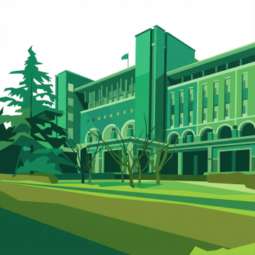 中景仰拍视角,现代风格校园建筑群沐浴在清晨金色阳光中,主体为红砖钟楼式教学楼主楼与红砖连廊式教学楼组合,左侧配银灰色金属质感实验楼,白色校门位于中央广场,门前有几何形绿化带、成排梧桐树及石板道路,天空湛蓝点缀絮状白云,阳光透过树叶形成斑驳光影,地面有黄色校车、骑行学生及步行师生,钟楼顶部时钟指向8:00,教学楼玻璃幕墙反射着天空与树木,建筑细节包括红砖砌法纹理、金属窗框线条和浮雕校徽,色彩以砖红色与灰白色为主调,点缀绿色植物,构图采用三分法,前景有晨读学生剪影,中景建筑群形成明确透视,背景是城市天际线,整体呈现明快而庄重的学术氛围,写实主义风格,空间纵深感强烈。