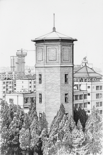 水彩手绘风插画,融合纪念碑与心形元素,文艺清新,柔和色调,手账风格,传递温暖纪念之情。