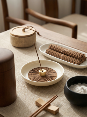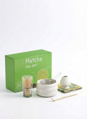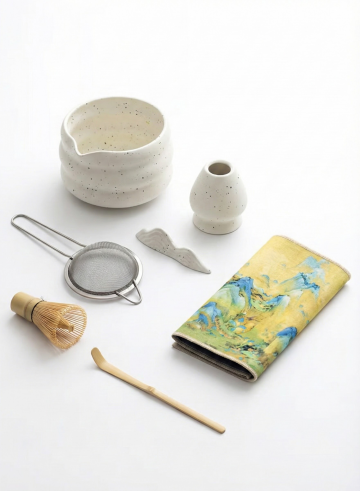 一张具有极简主义风格的茶具摄影海报,画面主体为四个不同样式的黑色茶具,包括一个带有圆点纹理的提梁茶壶、一个带托盘的茶杯,以及另外两个造型各异的茶杯或茶碗,所有茶具均采用哑光黑色陶瓷材质,表面质感细腻。茶具整齐摆放在浅棕色竹制垫子上,垫子纹理清晰可见。茶具旁点缀着几片翠绿的竹叶,增添自然气息。整体构图采用简约对称式布局,主体位于画面中央,视觉层级明确,茶具为绝对视觉焦点。背景为纯白色,光线柔和均匀,从左上方打亮主体,在茶具边缘形成淡淡的高光,底部投射出柔和的阴影,增强立体感。色调以黑白棕为主,色彩和谐统一,营造出宁静、素雅、禅意的东方美学氛围。画面无任何文字信息,信息传达简洁高效,突出茶具本身的设计美感与材质质感,符合追求简约生活美学人群的审美需求。