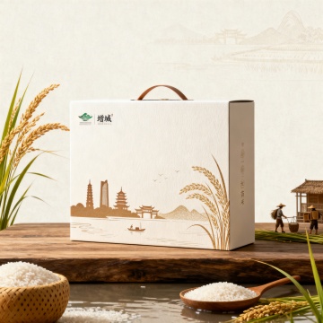高清写实风格的大米产品展示图,主体为一个装满饱满长粒白米的浅棕色木质碗,米粒晶莹剔透,表面光滑带有自然光泽,碗的木纹清晰可见且质感温暖。碗的左侧放置两束金黄饱满的麦穗,麦芒细长分明,呈现出自然的弯曲形态。碗的右下方有一个小一号的木质勺子,勺子里盛有部分大米,勺口处散落出少量米粒在白色背景上。整体色彩以白色(大米)、浅棕色(木碗、木勺)和金黄色(麦穗)为主,色彩和谐自然。光线从左上方柔和照射,在碗和勺子上形成轻微的高光和自然的阴影,增强立体感和真实质感。构图采用中心对称布局,主体突出,背景为纯白色,简洁干净,无任何文字、LOGO或多余元素,整体氛围清新、自然、纯净,专注于展示大米的优质品质和天然属性。