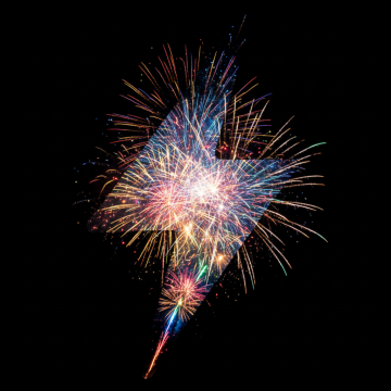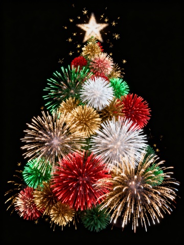 以多彩烟花堆叠成圣诞树,打破传统配色,借烟火的绚烂绽放感,融合节日的热闹与创意形态,营造出鲜活且极具视觉张力的圣诞氛围