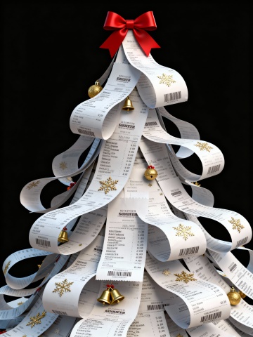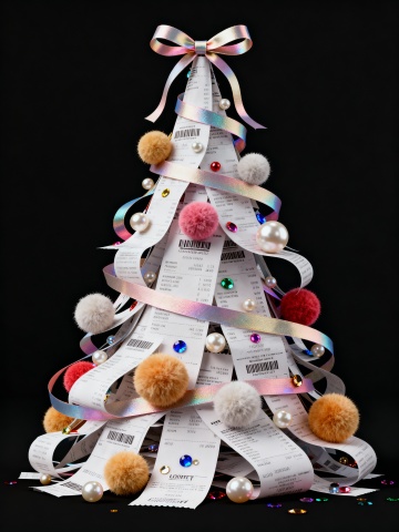 用废旧票据堆叠成圣诞树,以环保材料重构节日装饰,保留树形与星星顶的圣诞元素,既传递可持续理念,又营造出独特的复古文艺氛围
