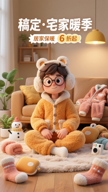 轻拟物风融合杂志感,暖光洒落的客厅实景营造温馨舒适氛围,简约主义设计搭配印刷风元素,双11暖家主题尽显生活温度。