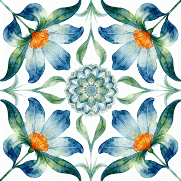 精致的东方传统纹样无缝背景,以流畅的线条勾勒出变形的花卉、卷曲藤蔓与几何图案交织的对称式重复图案,整体造型在保持传统韵味基础上融入现代简约抽象感,色彩变换为靛蓝色与珊瑚粉的柔和渐变线条,在纯白色背景上形成典雅而富有层次感的连续纹样,线条粗细均匀,图案细节丰富且疏密有致,展现出细腻的装饰美学与和谐的视觉韵律。