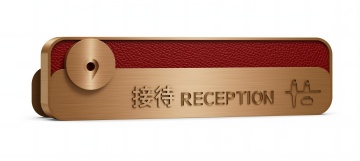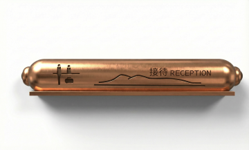立体效果,铜拉丝材质,表面光滑,文字铜材质,红色部分亚克力纹,木纹背景