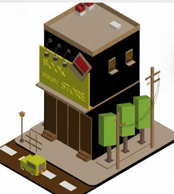赛博朋克风3D建筑,霓虹灯点缀,金属质感搭配几何图形,未来感十足的虚拟现实潮流店铺,梦幻与科技交融。