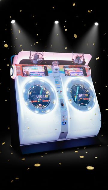 俯视角构图,一台棱角分明的哑光白滚筒洗衣机静置于深邃的午夜蓝渐变背景中,舱门以45度角优雅敞开,露出内部如精密齿轮般交错的银色不锈钢内筒,波浪形洗衣槽在侧逆光下形成明暗交错的几何阴影。顶部控制面板采用悬浮式设计,圆形旋钮泛着冷调金属光泽,LED显示屏正投射出幽蓝的数据光芒,按键排列如琴键般富有韵律感。洗衣机底部与光滑的液态银地面无缝相接,形成完美对称的倒影,地面反射着内筒的机械纹路与控制面板的点点蓝光。整体光线采用三点打光法:主光源勾勒出洗衣机锐利的轮廓线,辅助光凸显哑光与金属的材质对比,背光在背景墙投射出微妙的光晕渐变,营造出未来实验室般的科技静谧感,高清晰度捕捉每一处接缝的精密工艺。