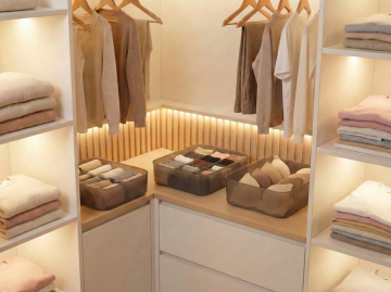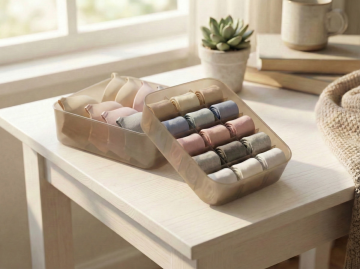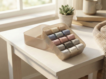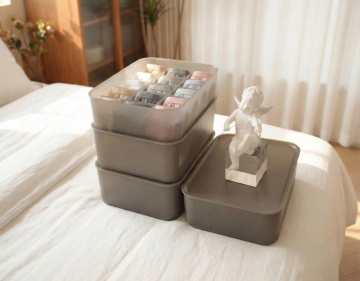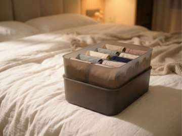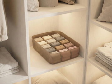 在收纳盒格子里放入叠好的内裤