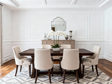 温馨雅致的日式怀石料理餐厅内部场景,暖色调木质装潢与深色餐桌形成沉稳对比,天花板悬挂着散发柔和暖光的方形和纸灯笼吊灯,中央摆放着插有白色花枝的深色陶瓷高瓶,餐桌铺着素雅的浅色桌布并整齐摆放着精致的日式餐具与高脚酒杯,背景可见木质酒架与柔和灯光点缀的吧台,整体氛围宁静而富有禅意,光影柔和细腻,营造出静谧舒适的用餐环境。