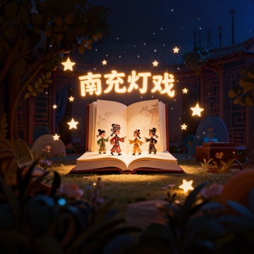 梦幻3D微缩艺术,笔塔照亮知识星系,超现实卡通场景。