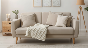 生成三张场景图 产品是图中的沙发和沙发巾,场景展示可以是多角度的 要求保留沙发巾的材质细节,可以多角度展示沙发和沙发巾 场景可以是奶油风的客厅背景,可以是阳台的沙发展示,或者室外露台的沙发巾展示 比例1:1