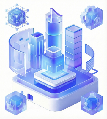 科技感十足的3D玻璃风图标,融合未来感与清透质感,轻拟物设计呈现体积感,象征数据安全与智能交互,适配现代数字生活场景。
