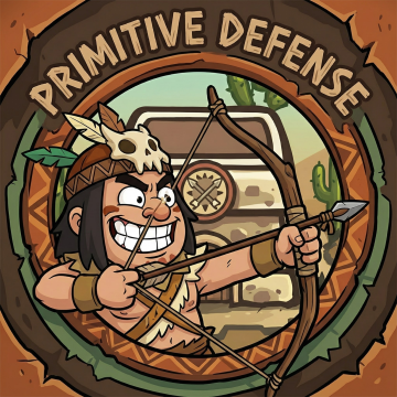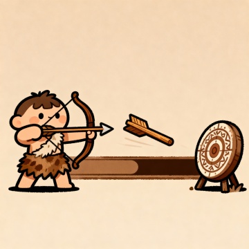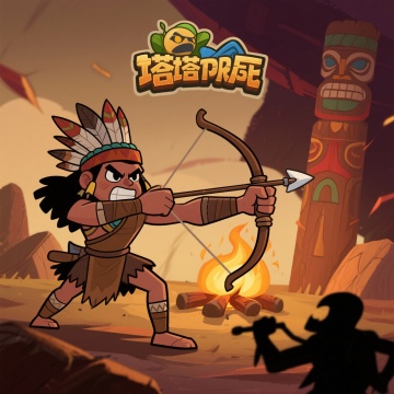 帮我设计一个游戏进度条,风格卡通。进度条最左边是一个角色拿着弓箭射击,很q的角色,进度条中间是一把向前飞的箭,最右端是箭靶,整体比较原始部落风格