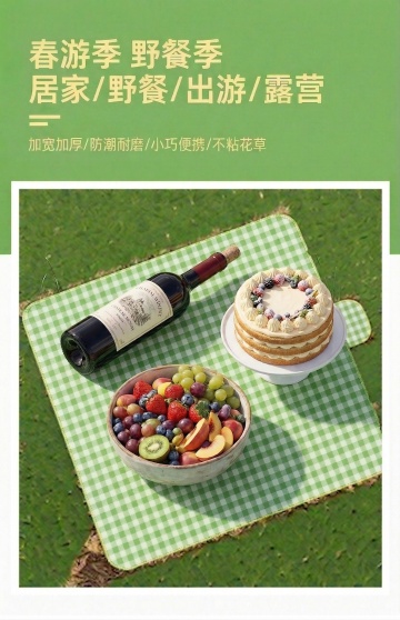 清新绿意盎然,轻拟物风野餐垫搭配真实美食,营造唯美实景感,面料质感细腻,传递春日舒适野趣。