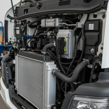 写实风格摄影,画面中多辆白色大型货运卡车行驶在蜿蜒的沿海高速公路上,道路两侧是陡峭的悬崖和碧蓝的海水,远处可见白色的沙滩和几艘帆船,天空中飘着几朵白云,阳光明媚,光线充足,色彩鲜艳,绿色的植被与蓝色的海洋形成鲜明对比,画面具有强烈的空间感和纵深感,展现出开阔、自由的氛围。