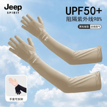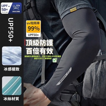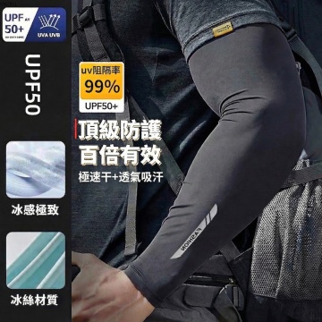 清爽感与舒适感交织,现代简约设计融合光影质感,双色对比突出防晒冰袖的时尚与功能,实景拍摄强化真实触感,大字风传递核心卖点,面料细节展现轻盈透气。