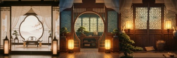 3D风格中式古风角色,质朴布料质感,古典服饰设计,展现传统美学与现代动画融合。