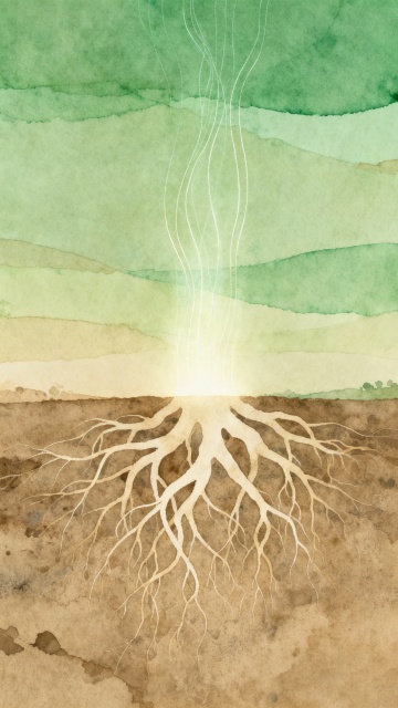 中国传统手绘风格插画,单一人参元素图案,人参主体为自然弯曲的根茎形态,表面有细密环状纹理,棕黄色根部带有分叉须根,顶部连接绿色羽状复叶,叶片边缘有锯齿,叶脉清晰,整体造型写实细腻,线条流畅,色彩为自然的棕黄色根茎搭配深绿色叶片,背景为纯色,构图规整居中,无文字、无logo、无水印,保持清新自然的传统插画风格。