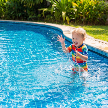 happy boy, white hat, blue short, in the park