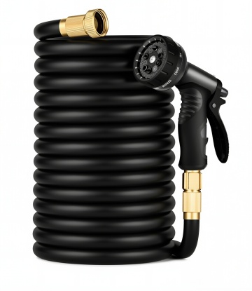 把蓝黑色的水管水枪改成纯黑色的水管水枪 水管布料纹理不改变 不改变其他内容 不改变产品外观细节