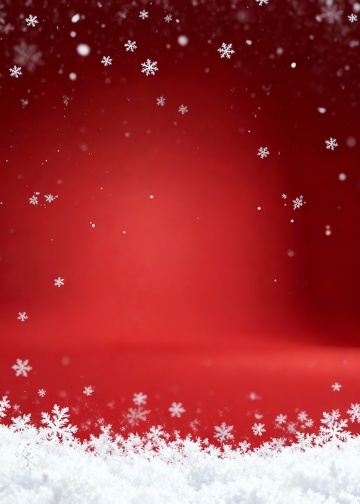 大面积留白的圣诞背景设计,以深红色为纯色背景,边缘和角落点缀着多种大小不一、形态各异的白色雪花图案,部分雪花带有精致的花纹细节,背景中还散布着细小的白色圆点作为装饰,整体风格简洁、节日氛围浓厚,视觉层次清晰,留白区域占比大,营造出简约而不失温馨的圣诞感觉。