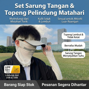 这是我的tiktok小店正在售卖的一款冰袖和面罩套装,主要售卖国家是马来西亚,我现在需要至少8张图片来介绍这个产品,促使顾客下单,产品卖点:遮阳防晒,冰爽亲肤,适合烈日下的户外活动,面罩柔软高弹不紧绷,透气不闷,冰袖凉感降温,。我的要求是:展示产品的使用场景,展示产品的材料细节是透气不闷,冰感面料,适合户外活动以及送外卖等场景。语言用马来西亚语,并符合当地民众的阅读习惯。产品样子不要改变如果你是一名资深的tk跨境电商运营,会怎么设计这些图
