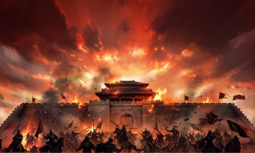 中式古典场景,3D重拟物风呈现古代城建实景,水墨与岩彩元素融合,人物服饰考究,展现先民筑城劳作的生动画面。