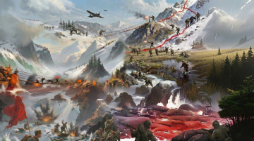 无数架直升飞机在空中作战 背景是爆炸的火光和烟雾 空中还有无数炮弹射出在空中穿行带有火光 还有爆炸产生的残片