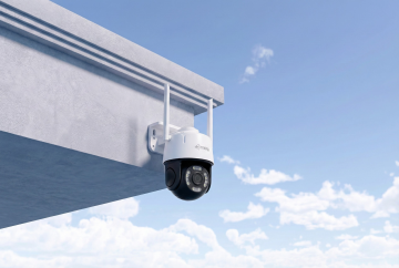 将这个摄像头安装到一个白人房子的屋檐下,8k高清,图片比例1:1