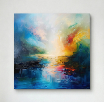 一幅充满动感与活力的抽象色彩流体艺术作品,整体呈现出浓厚的油画质感,色彩以深邃的靛蓝色为背景,中央及下方区域由炽热的橙红色、明亮的金黄色和清新的青蓝色相互交融、流淌、扩散,形成强烈的视觉冲击力和层次感,色彩过渡自然且富有张力,笔触厚重而奔放,呈现出颜料在画布上肆意挥洒的流动感和随机性,光影效果柔和,高光部分主要集中在色彩交汇的明亮区域,营造出温暖而热烈的氛围,画面构图饱满,色彩元素充满整个空间,展现出色彩的极致碰撞与融合之美。