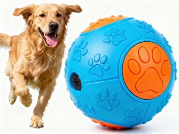酷极漏食球的核心卖点是“缓慢出食,增加宠物进食乐趣与时间”。一个时钟的表盘为背景,指针缓慢转动,旁边有一个酷极漏食球,从漏食球的孔洞中有食物以较慢的速度流出,形象地表现出产品能够延长宠物进食时间的卖点。要求:精细一点,时钟在墙上,漏食球在桌子上,生动符合实际