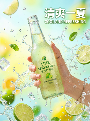 清新插画风,轻拟物设计,简约主义展现夏日冰爽茶饮,冰块飞溅,清凉感十足。