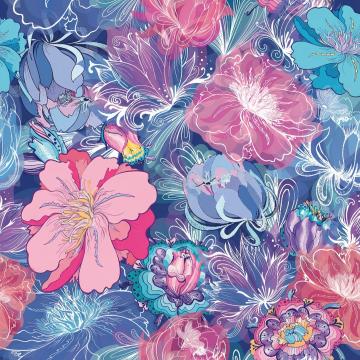 精致的东方传统纹样无缝背景,以流畅的线条勾勒出变形的花卉、卷曲藤蔓与几何图案交织的对称式重复图案,整体造型在保持传统韵味基础上融入现代简约抽象感,色彩变换为靛蓝色与珊瑚粉的柔和渐变线条,在纯白色背景上形成典雅而富有层次感的连续纹样,线条粗细均匀,图案细节丰富且疏密有致,展现出细腻的装饰美学与和谐的视觉韵律。