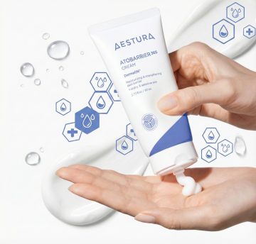 一张年轻女性手持护肤品、渐变紫色背景的美妆广告风格图片