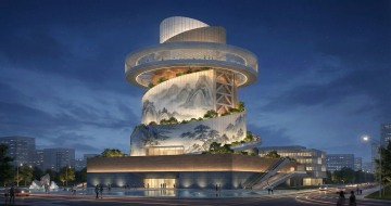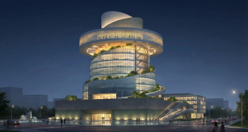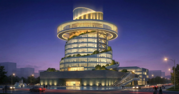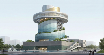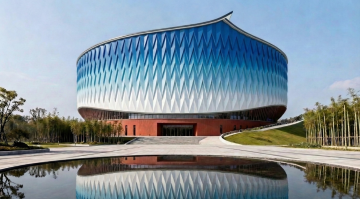 现代感与未来感交织的几何建筑,玻璃风与金属风碰撞,光影在静谧水面倒映,3D风格营造虚拟现实般的唯美感,简约主义中透出优雅。