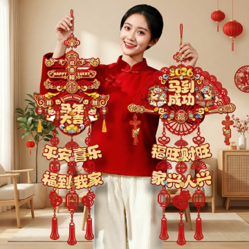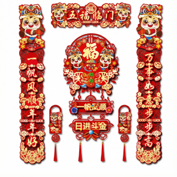 这是一款新年装饰挂件,对联,换个背景,要简约温馨一点,人物也要在,也要在门上贴着,把背景虚化,第一眼要看到对联,主次也要分明。添加【新年装饰挂件】【磁吸对联】文字